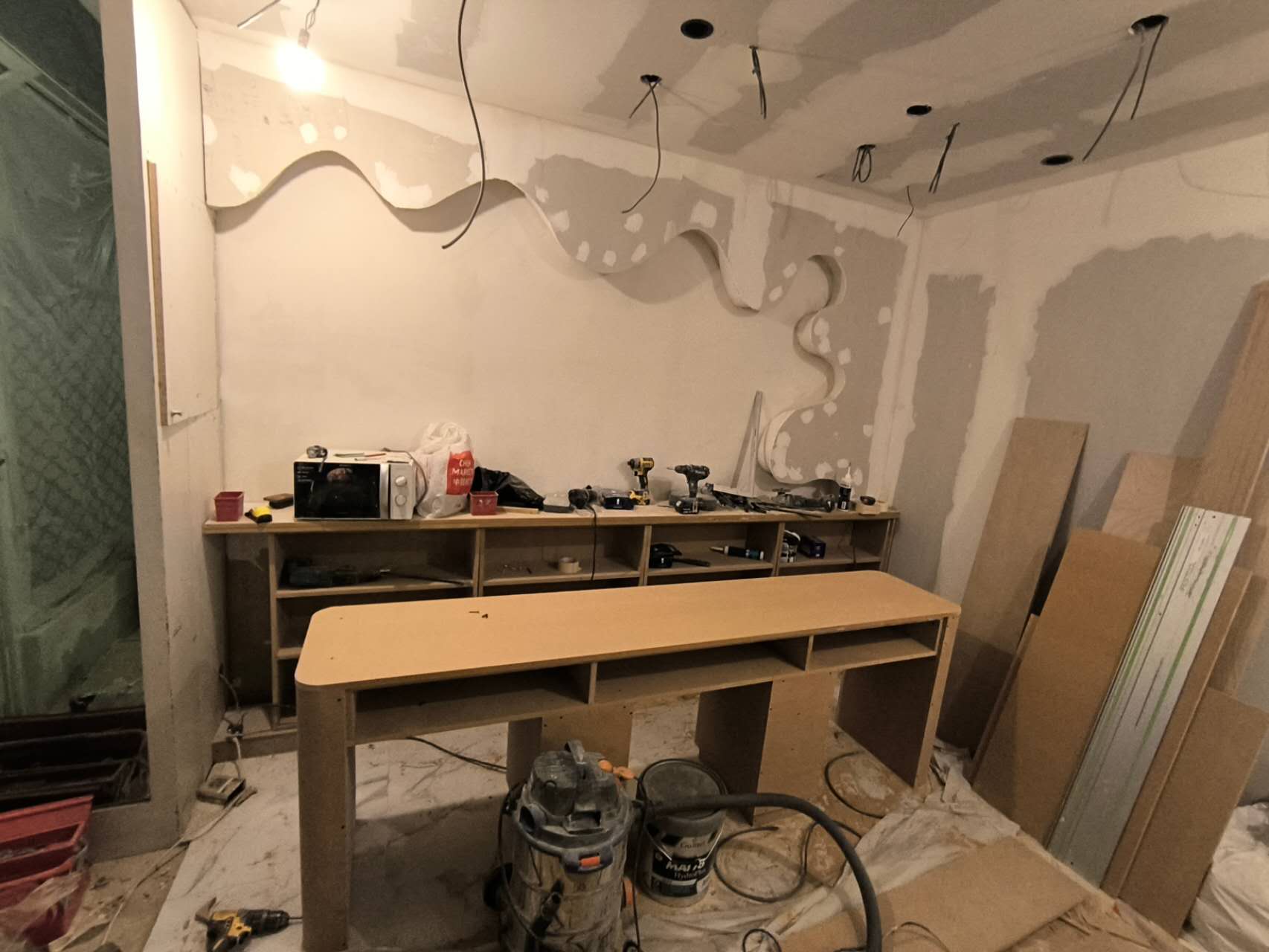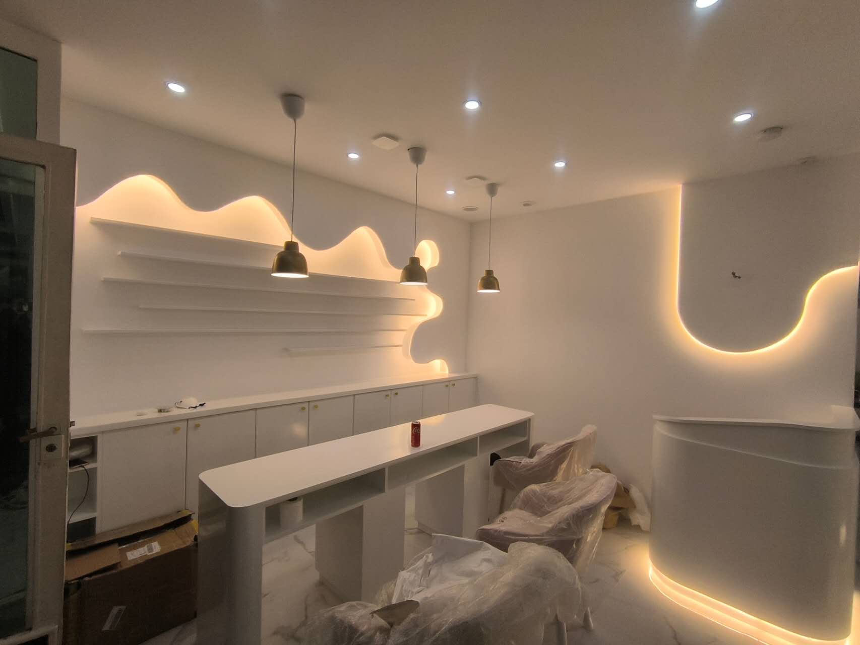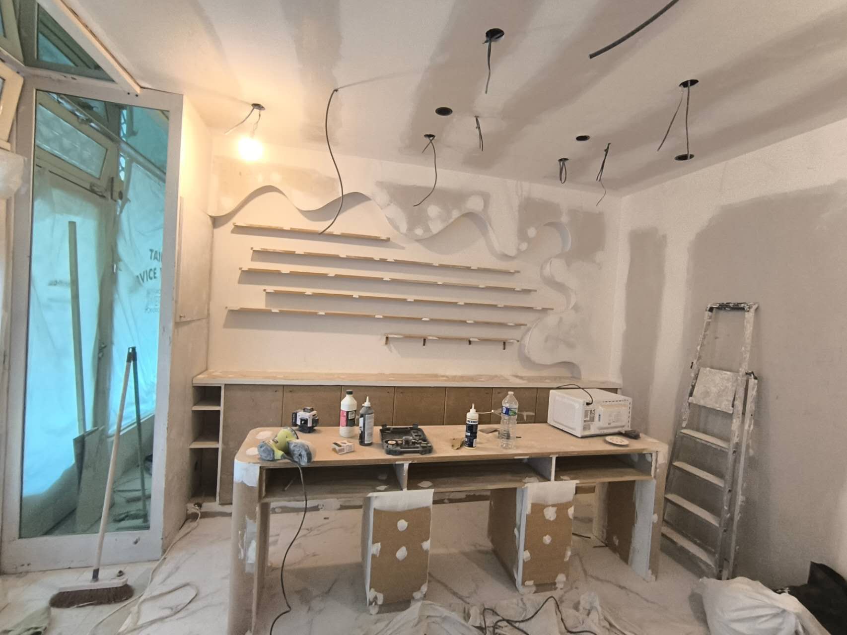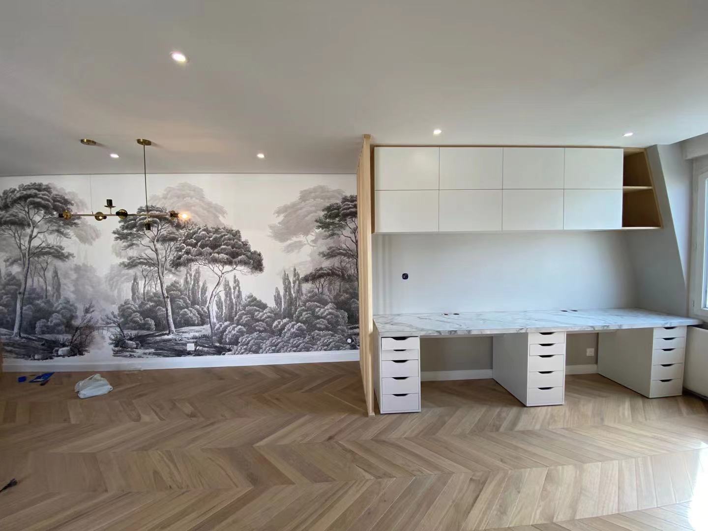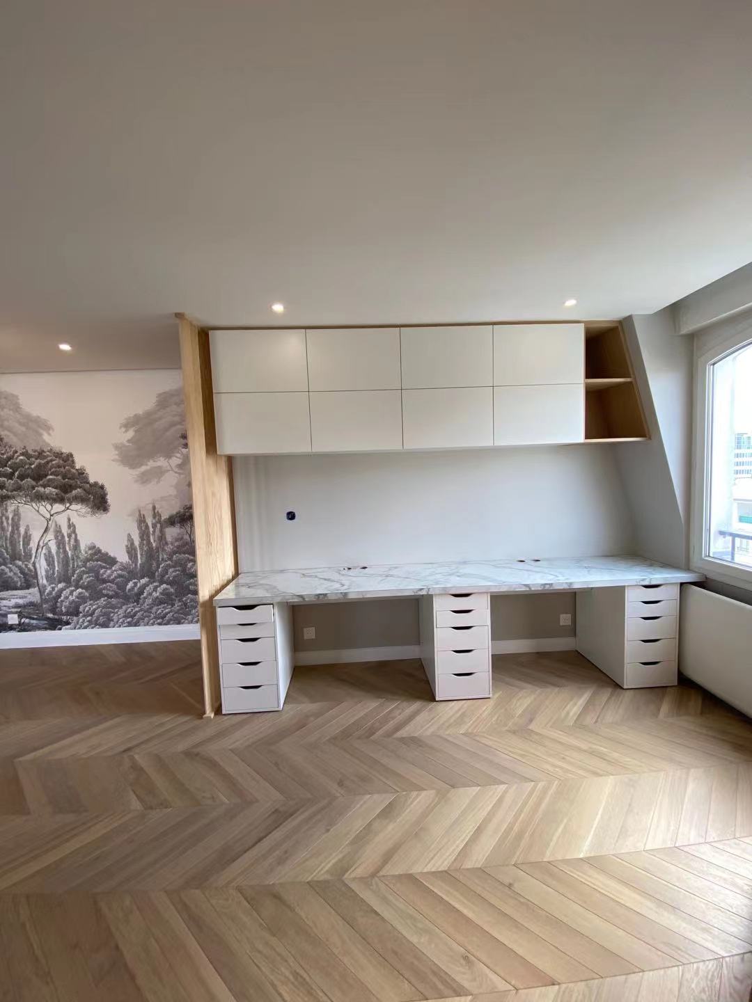 • 装修:油漆,瓷砖,隔断,重新拉电线,重新布置新的下水道,吊顶,根据现场尺寸定制各种木质柜子。